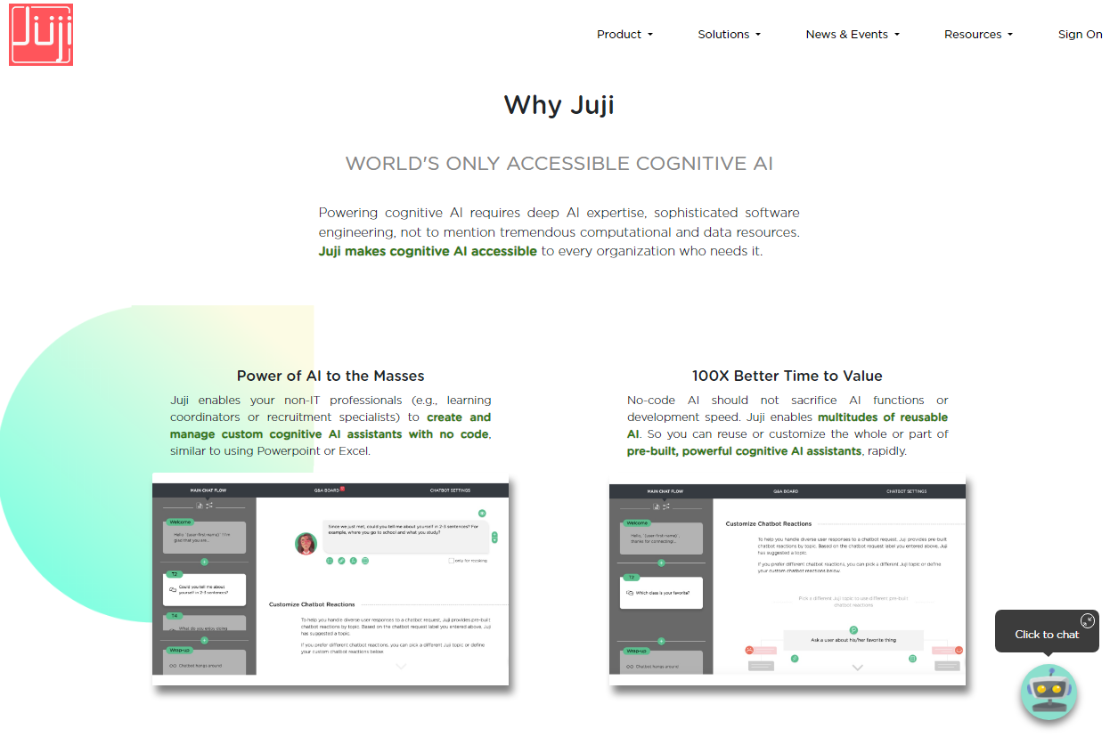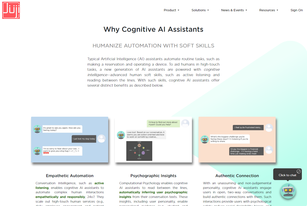 Meet Juji, the ingenious AI chatbot builder that brings a human touch to automation. With Juji, your organization can effortlessly create and manage custom cognitive AI assistants that connect authentically with users. What sets Juji apart? It melds the power of Conversation Intelligence and Computational Psychology, enabling empathetic automation and delivering psychographic insights that forge genuine connections. Juji's user-friendly interface empowers you to design and fine-tune chatbots without coding complexities. It's mission-critical AI foundation ensures reliability, even in high-stakes scenarios. Plus, real-time analytics and improvements keep your chatbot at its peak. And here's the best part: You can explore and build with Juji for free until you're ready to launch. Experience the future of conversational AI with Juji and redefine how you engage and connect with your audience.