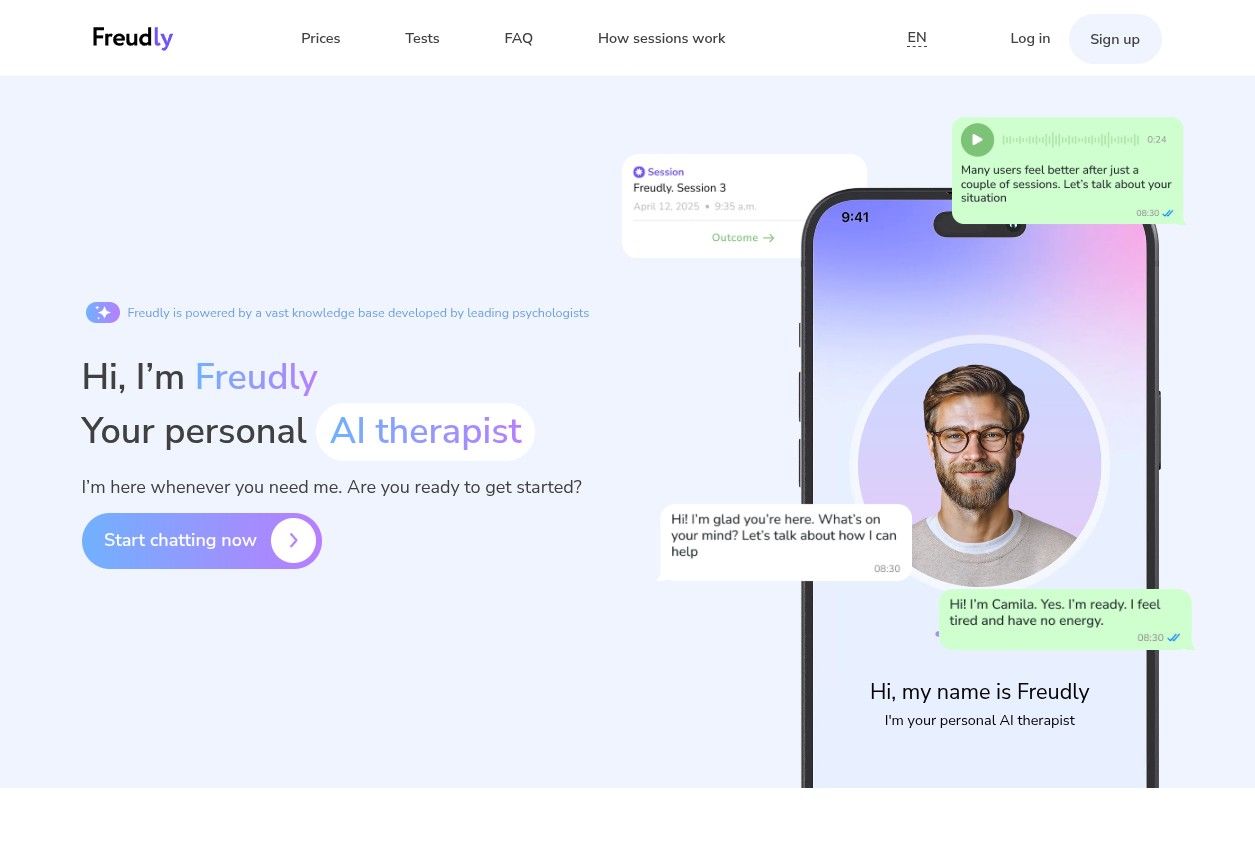 Discover Freudly, your personal AI therapist available anytime you need support. This innovative tool is powered by a va...