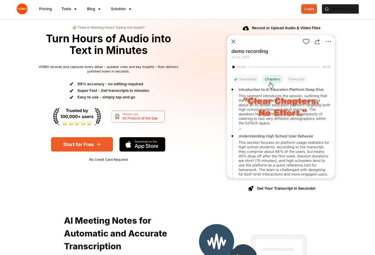 Stop wasting hours manually transcribing your meetings. VOMO is your intelligent AI meeting assistant that transforms ho...