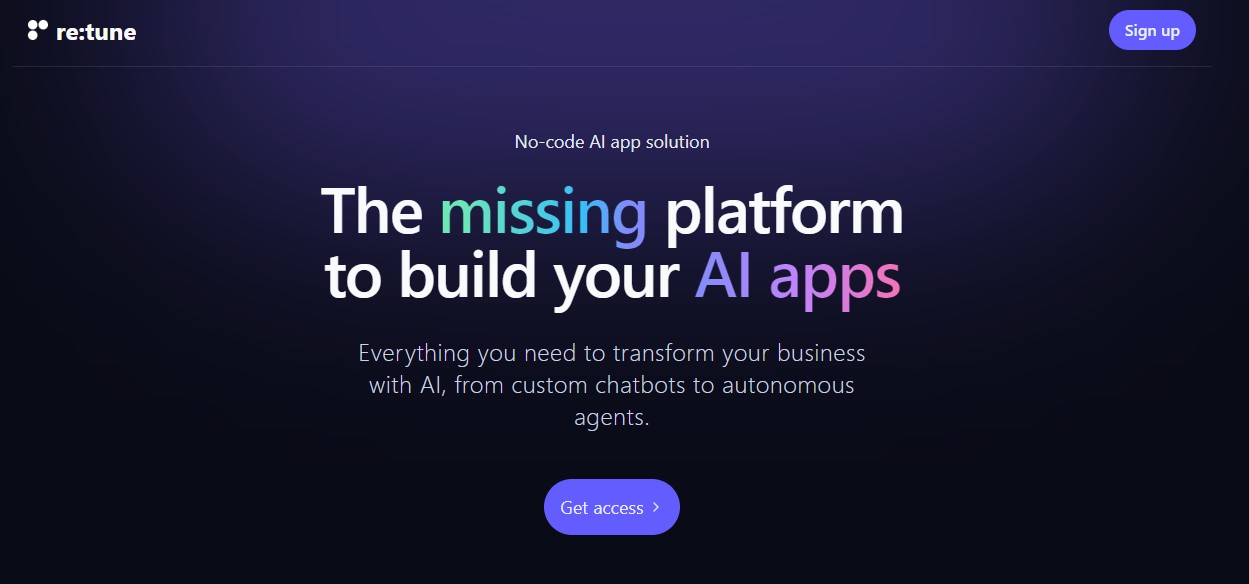 re:tune is an exceptional platform designed to empower individuals to harness the power of AI technologies without the need for coding expertise. This revolutionary tool unlocks endless possibilities for building GPT-3 powered applications effortlessly. With re:tune, users gain access to a feature-rich playground where they can train AI models, enabling them to refine and optimize their applications to perfection. One of the remarkable aspects of re:tune is its monetization capability, allowing users to derive value from their data and fine-tuned models. By offering a seamless monetization process, this platform empowers developers and individuals to turn their AI creations into profitable ventures. Whether it's creating chatbots, personal assistants, or other intelligent applications, re:tune provides the necessary tools and infrastructure to bring ideas to life. The user experience on re:tune is intuitive and user-friendly, eliminating barriers to entry for those who are new to AI technologies. Its user interface is thoughtfully designed to facilitate effortless navigation and seamless interaction, ensuring that users can focus on the creative process rather than grappling with technical complexities. Moreover, re:tune keeps pace with the ever-evolving landscape of AI technologies, ensuring that users have access to the latest advancements and updates. The platform provides a robust foundation for innovation and experimentation, fostering a vibrant community where users can collaborate, share insights, and push the boundaries of what is possible. In conclusion, re:tune stands as a groundbreaking solution that democratizes AI development. By eliminating the need for coding and providing a comprehensive toolkit, this platform empowers individuals from various backgrounds to create GPT-3 powered applications with ease. With its data monetization features and support for chatbots, personal assistants, and more, re:tune opens up a world of possibilities for AI enthusiasts and entrepreneurs alike.