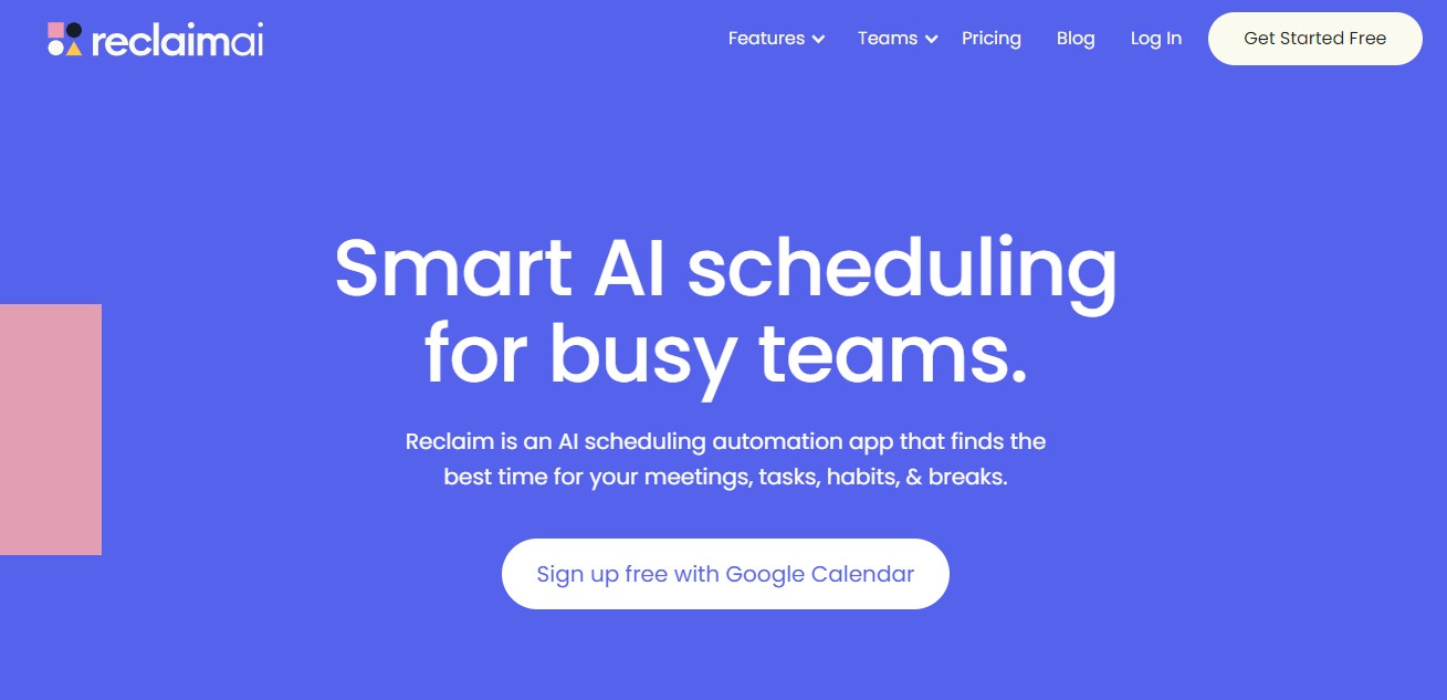 Reclaim AI is a cutting-edge tool that revolutionizes task management and scheduling for Google Calendar. With its advanced algorithms and intelligent capabilities, Reclaim takes the hassle out of organizing your team's priorities and maximizes productivity. By leveraging the power of AI, Reclaim creates the perfect schedule that aligns with your team's goals and objectives. One of the standout features of Reclaim is its ability to save up to 4% of the workweek. Through intelligent, flexible, and adaptive time orchestration, the tool optimizes your calendar, ensuring that every minute is utilized efficiently. Gone are the days of juggling multiple tasks and struggling with conflicting schedules. Reclaim's AI technology takes into account various factors such as deadlines, meeting durations, and individual preferences to create a seamless schedule that maximizes productivity. The adaptability of Reclaim AI is truly remarkable. It learns from your behavior, making adjustments and suggestions based on your work patterns and preferences. This personalized approach ensures that your schedule is tailored to your needs, empowering you to focus on what matters most. Reclaim also excels in team collaboration. By integrating seamlessly with Google Calendar, it enables effortless coordination and communication among team members. Whether it's scheduling meetings, assigning tasks, or managing shared deadlines, Reclaim streamlines the entire process, saving valuable time and effort. In summary, Reclaim AI is a game-changer for task management and scheduling. With its intelligent algorithms and adaptability, it optimizes your calendar, saves time, and enhances team collaboration. Embrace the power of AI with Reclaim and experience a new level of productivity and efficiency in your workday.